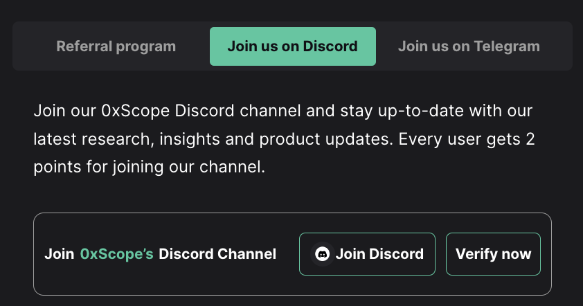 2\. You will be redirected to the Discord invite link to the 0xScope group. Once you're done with joining the Discord group, go back to your Scopechat profile page and click/tap the Verify Now button.