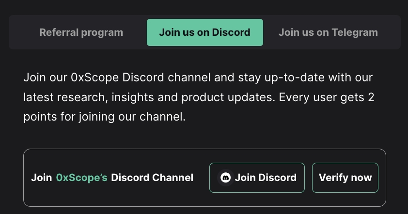 2. You will be redirected to the Discord invite link to the 0xScope group. Once you're done with joining the Discord group, go back to your Scopechat profile page and click/tap the Verify Now button.