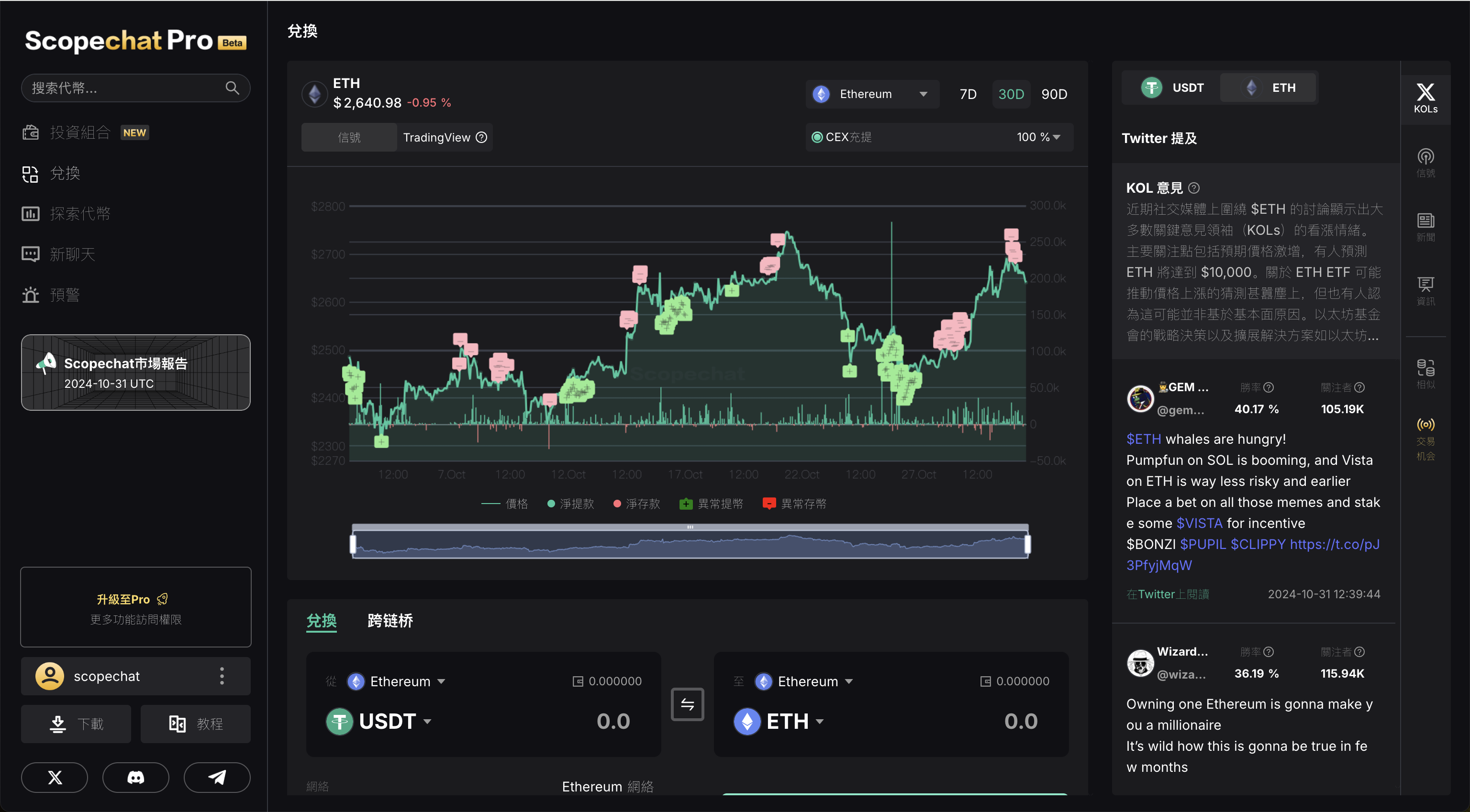 在Scopechat的交換功能中,您可以通過代幣資訊與分析面板查看以下內容: